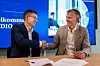 SAMARBEIDER: Accenture skal bistå DIO i arbeidet med å gjennomføre overgangen til en moderne plattform. Her inngår Anders Aagaard Sørby, direktør i DIO og Torbjørn Eik-Nes, daglig leder i Accenture avtalen.