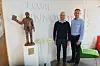 GRÜNDERBEDRIFT: Acos konkurrerer med de store om å levere sak/arkivsystemer til offentlig sektor, og lykkes bra med det. I dag har selskapet over 160 ansatte og en omsetning over 170 millioner. Gründeren Conrad Hansen er pensjonert, men ikke glemt. Han hedres med en bronsestatue i resepsjonen til selskapet, som vi ser her sammen med daglig leder Bent-Inge Storheim (t.v.) og forretningsutvikler Per-Helge Refvik. (Foto: Stig Øyvann)