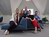 GJENGEN SAMLET: På besøk hos Admincontrol finner vi denne glade gjengen (F.v): Kommunikasjonsansvarlig Anne Marthe Bjørnulf Barton, Key Account Manager Erika Nilsen, selger Thomas Bertheau Aaserud, Client manager Nina Ferlic og markedssjef Daniel Hansen. (Foto: Stine Marie Hagen)