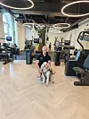 EFFEKTIVT: Med AI-gym er en god styrkeøkt unnagjort på under halvtimen. Dette er treningsformen for den som vil bruke minst mulig tid på treningssenteret, og for den som elsker gaming. På bildet er Bo Vegar Steinlen, partner og PT hos SQF (bak) sammen med senterets nydelige maskott (foran).