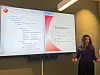 BUDSKAP: Jentene bak appen er i disse dager opptatt med å presentere og pitche prosjektet. Blant annet har Care Norge, stortingspolitiker Kamzy Gunaratnam (AP) og Oslo-ordfører Anne Lindboe (H) fått en gjennomgang av applikasjonen som skal gi unge jenter god oversikt over egen menstruasjon. (Foto: Line Gaare Paulsen)