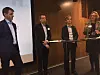 VIL HA MER DELING: Ivar Horneland Kristensen i Tekna, Håkon Haugli i Abelia, Paul Chaffey fra Kommunal- og moderniseringsdepartementet og Elsbeth Tronstad fra Utenriksdepartementet, var enige om at deling mellom EU og Norge og ikke minst mellom norske bedrifter fremmer innovasjon. Foto: Michael Oreld