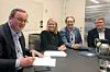 AVTALE I BOKS: Undertegning av avtalen mellom Statkraft og Haugaland Næringspark, fra venstre: Steinar Bysveen konserndirektør i Statkraft, Tiril Fjeld daglig leder Haugaland Næringspark, Atle Haga leder for Statkraft Data Center Sites og Øyvind Olsen fra Reenergi-programmet. (Foto: Geir Fuglseth/Statkraft)