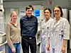 TVERRFAGLIG: Å jobbe på tvers av disiplinene er helt sentralt når en skal utvikle kunstig intelligens-algoritmer som skal løse kliniske behov i fremtidens kreftomsorg. Fra venstre: Ingerid Reinertsen (forskningsleder SINTEF og førsteamanuensis), Gabriel Kiss (førsteamanuensis, NTNU), Hanne Sorger (seksjonsoverlege i lungemedisin og førsteamanuensis) og Marit Valla (overlege patologi og førsteamanuensis). (Alle foto: Kai Kristiansen)