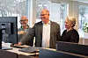 ROBOT: Storebrand skal levere trygg og kompetent rådgivning, enten den kommer fra en person eller en robot, sier leder av Storebrand Forsikring, Trond Fladvad, i midten. Til venstre Christian Moxheim. Til høyre Nan Evy Stende, salgsspesialist personforsikring. (Foto: Storebrand)