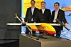 DREVET FREM: Konserndirektør Ole Nordhoff, styremedlem Jürgen Gerdes og professor Dieter Mormann har drevet frem bruk av tredje generasjon drone med bruk av et fly med vridbare vinger som flyr i definerte flykorridorer.