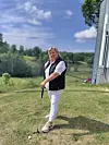 EN GOD PITCH: Marianne Smith Magelie står bak organisasjonen Ett slag av gangen, som gir mennesker som har falt utenfor, muligheten til å komme tilbake igjen til samfunnet. Ved hjelp av golf. (Foto: Stine Marie Hagen)